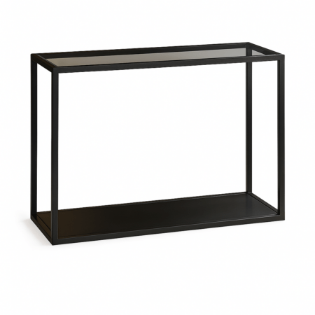 קונסולה מעוצבת בגוון שחור עם מדף זכוכית