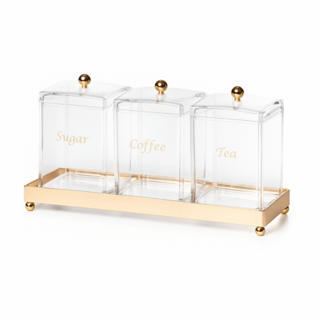 סט 3 צנצנות תה • קפה • סוכר עם מגש אקרילי תואם