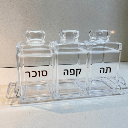 סט 3 צנצנות תה • קפה • סוכר עם מגש אקרילי תואם