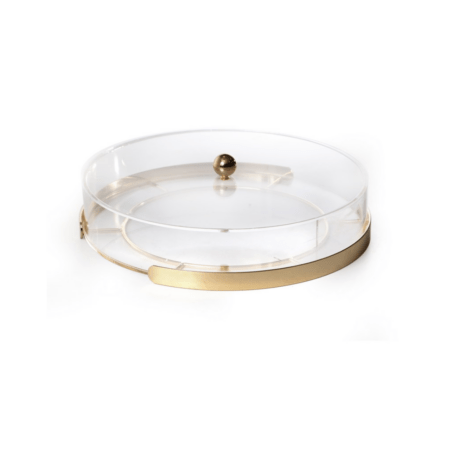 מגש זכוכית עגול על רגל ניקל ופעמון