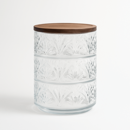 מגש עץ על רגל ופעמון זכוכית שקוף