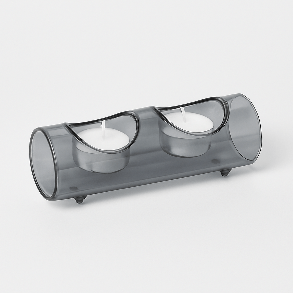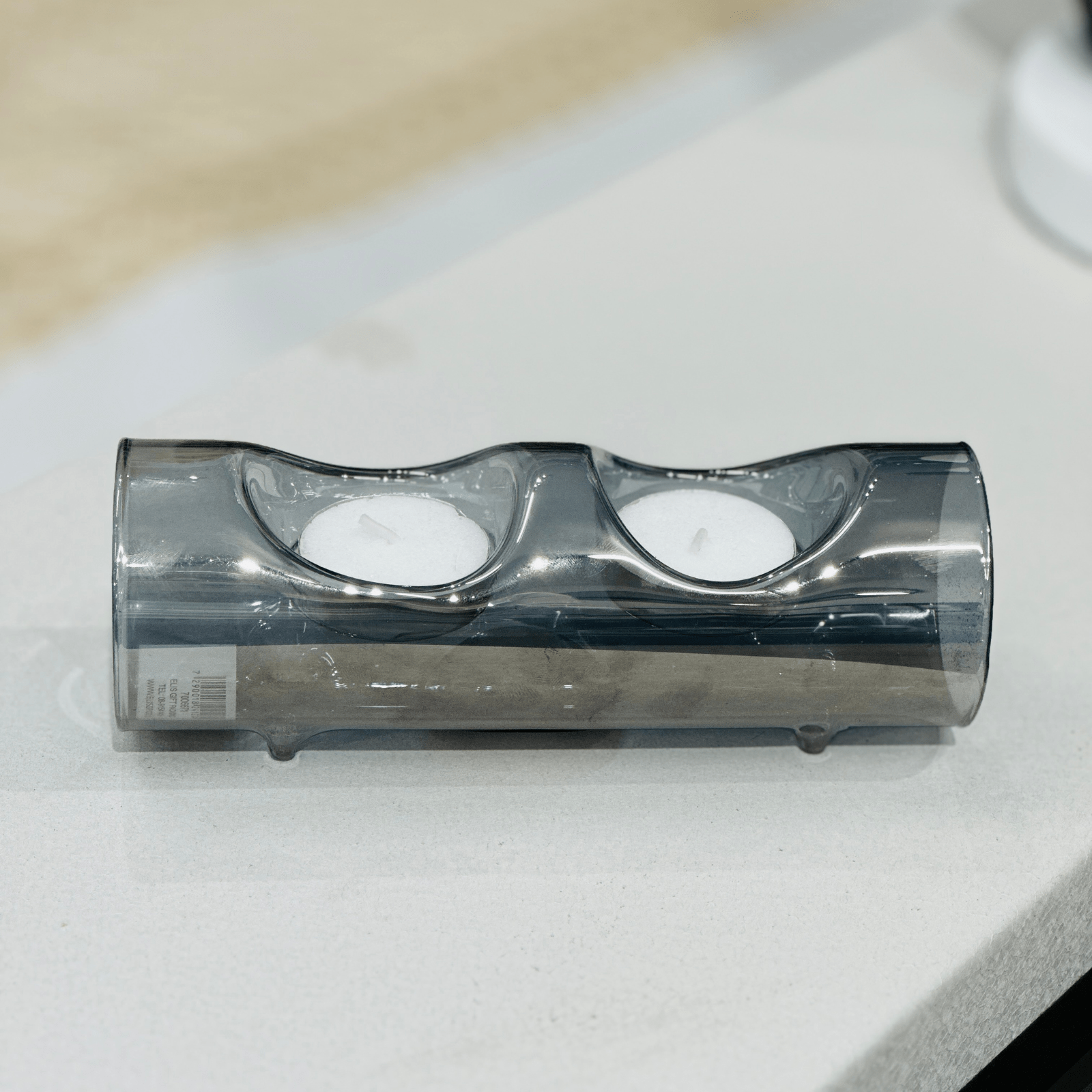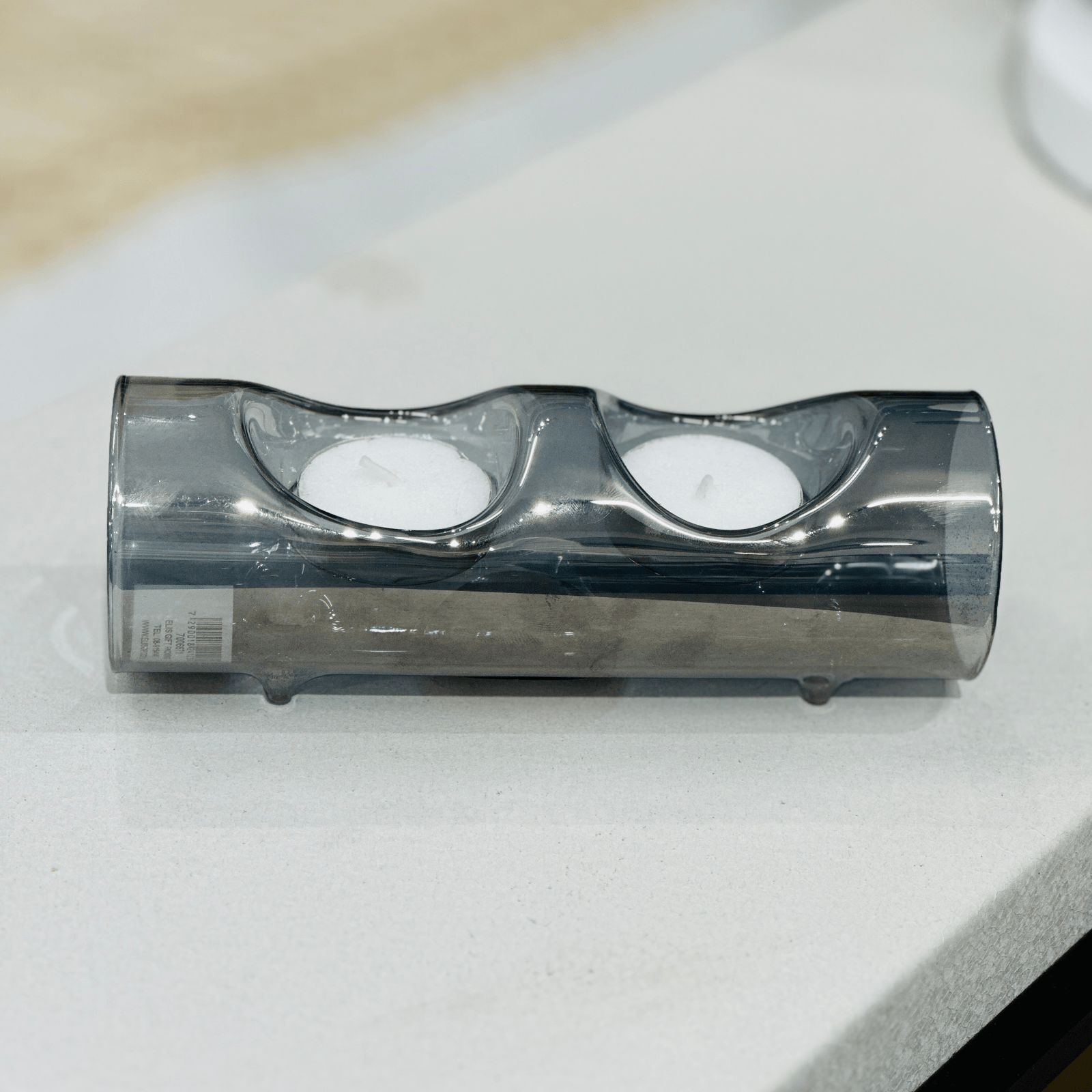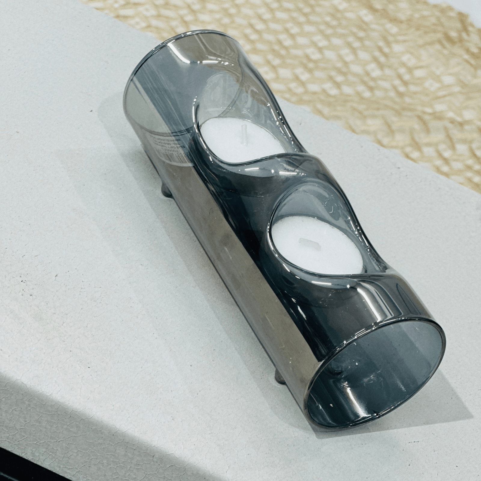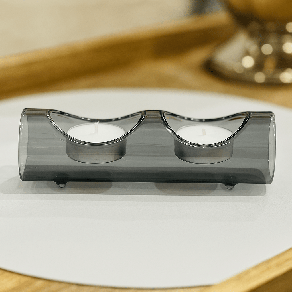מעמד עשוי זכוכית מעושנת בגימור חלק לזוג נרות Tea Light