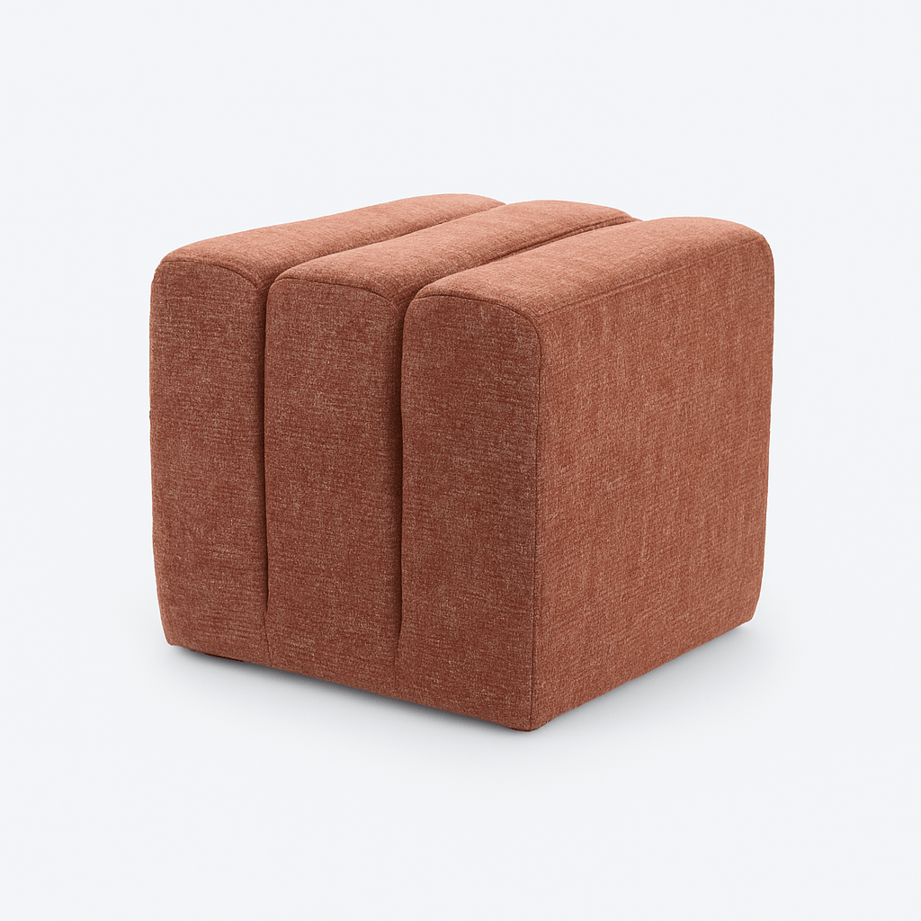 הדום מרובע עם עיצוב פסים רך ועדין, בגימור בד ארוג איכותי בגוון חמרה.