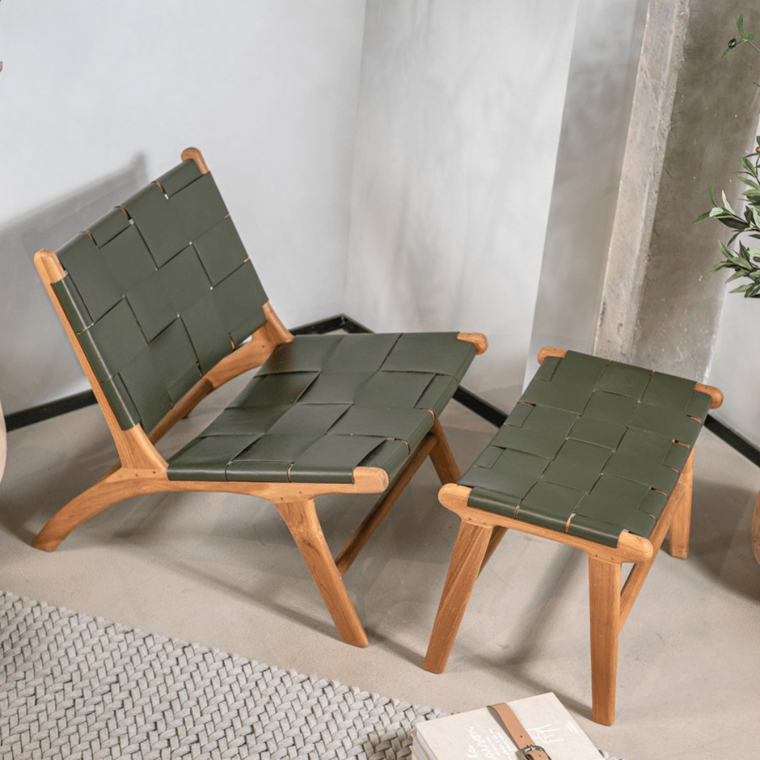 כורסת לאונג' אלגנטית עם נוכחות מרשימה משלבת בין קליעת עור שחורה בעבודת יד לבין בסיס עץ טיק איכותי בגוון טבעי. עיצוב שתי וערב ייחודי יוצר מראה קלאסי־מודרני שמתאים למגוון סגנונות – מסלון יוקרתי ועד פינת קריאה נעימה.
