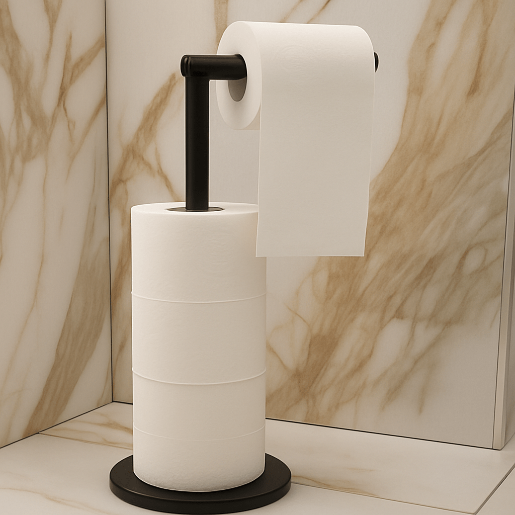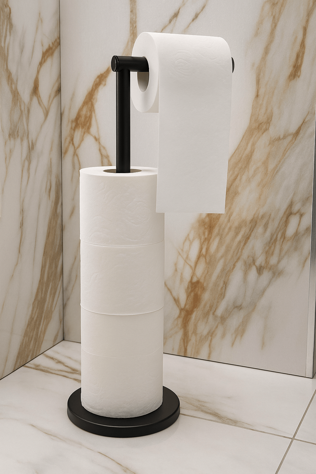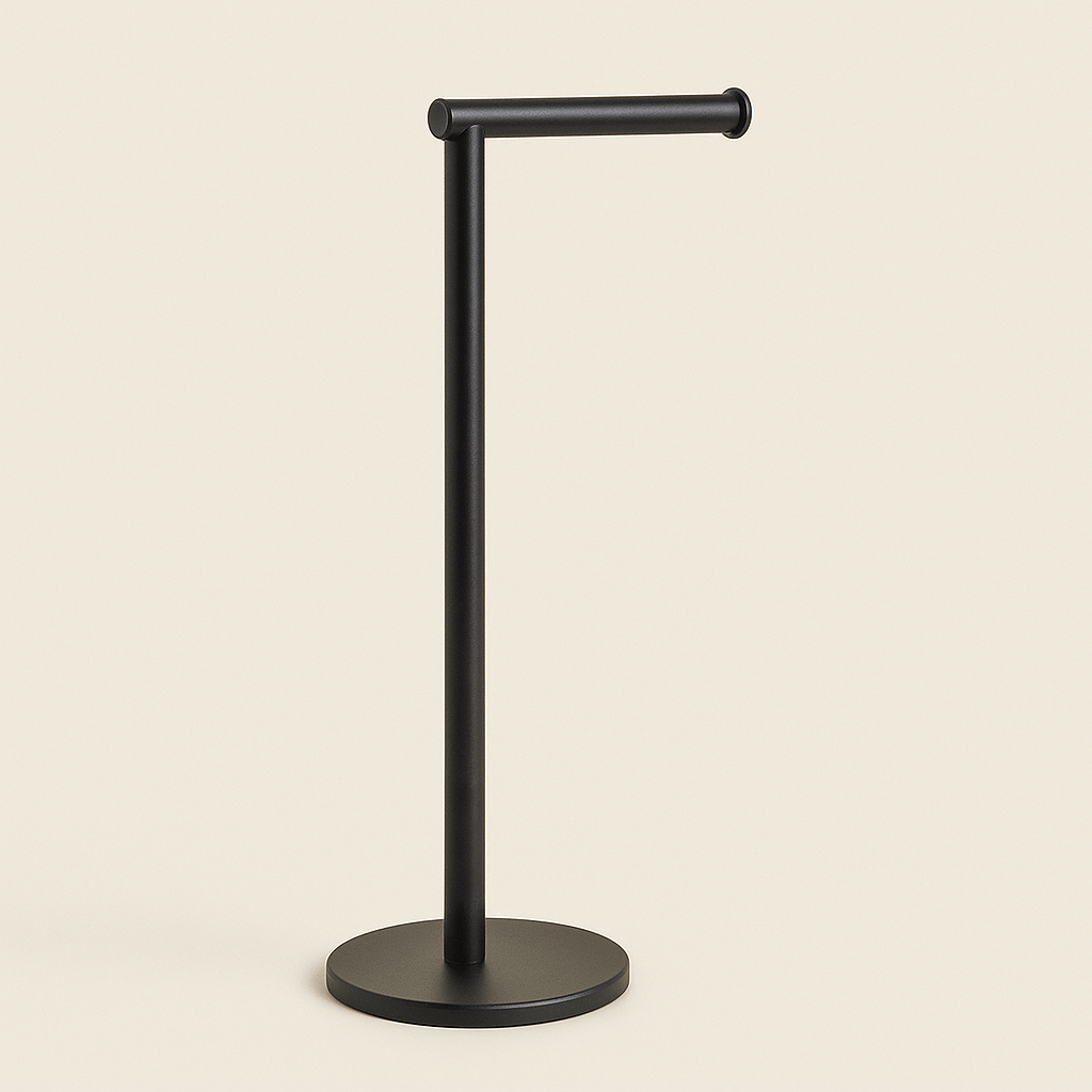 מעמד לנייר טואלט ריצפתי בצבע שחור מט.