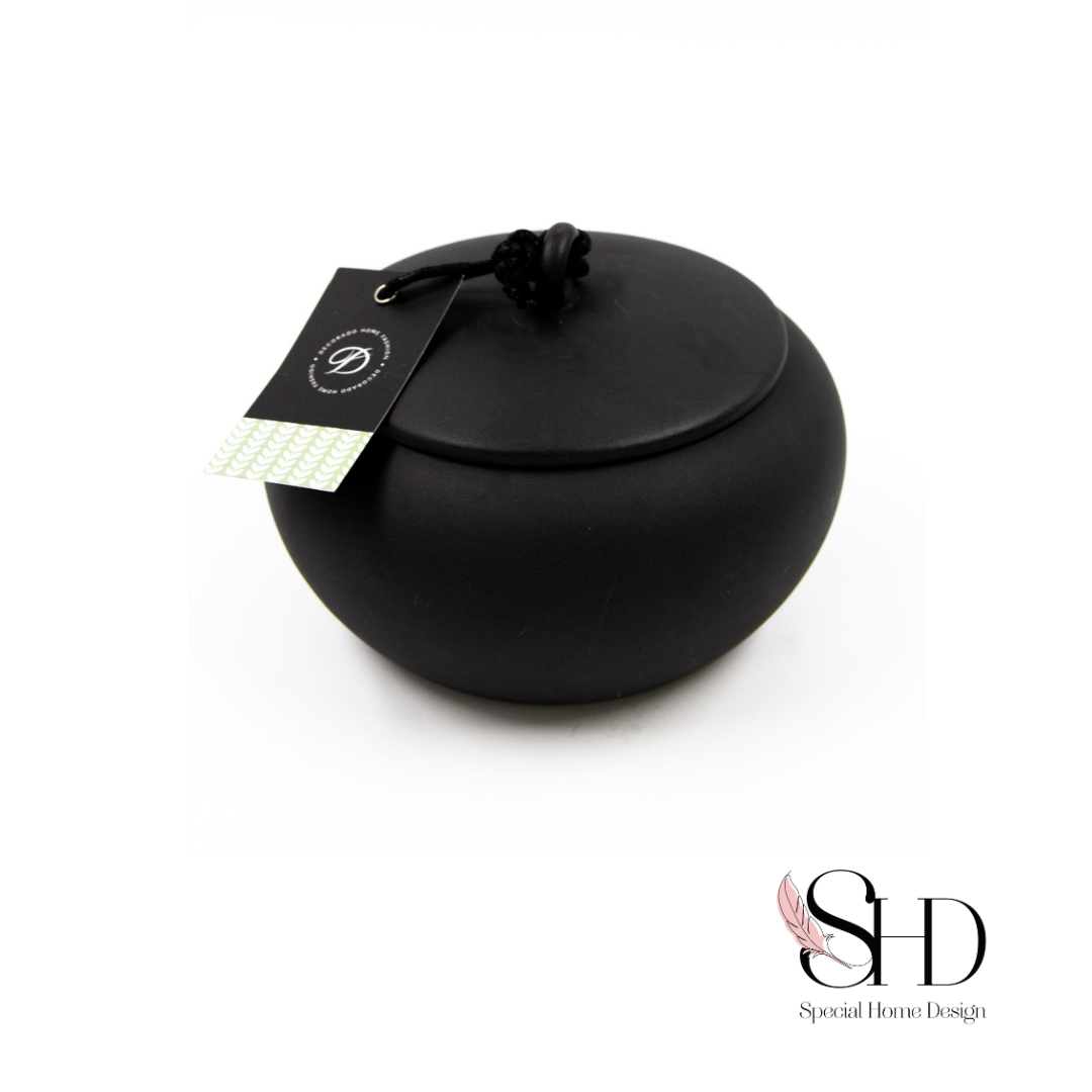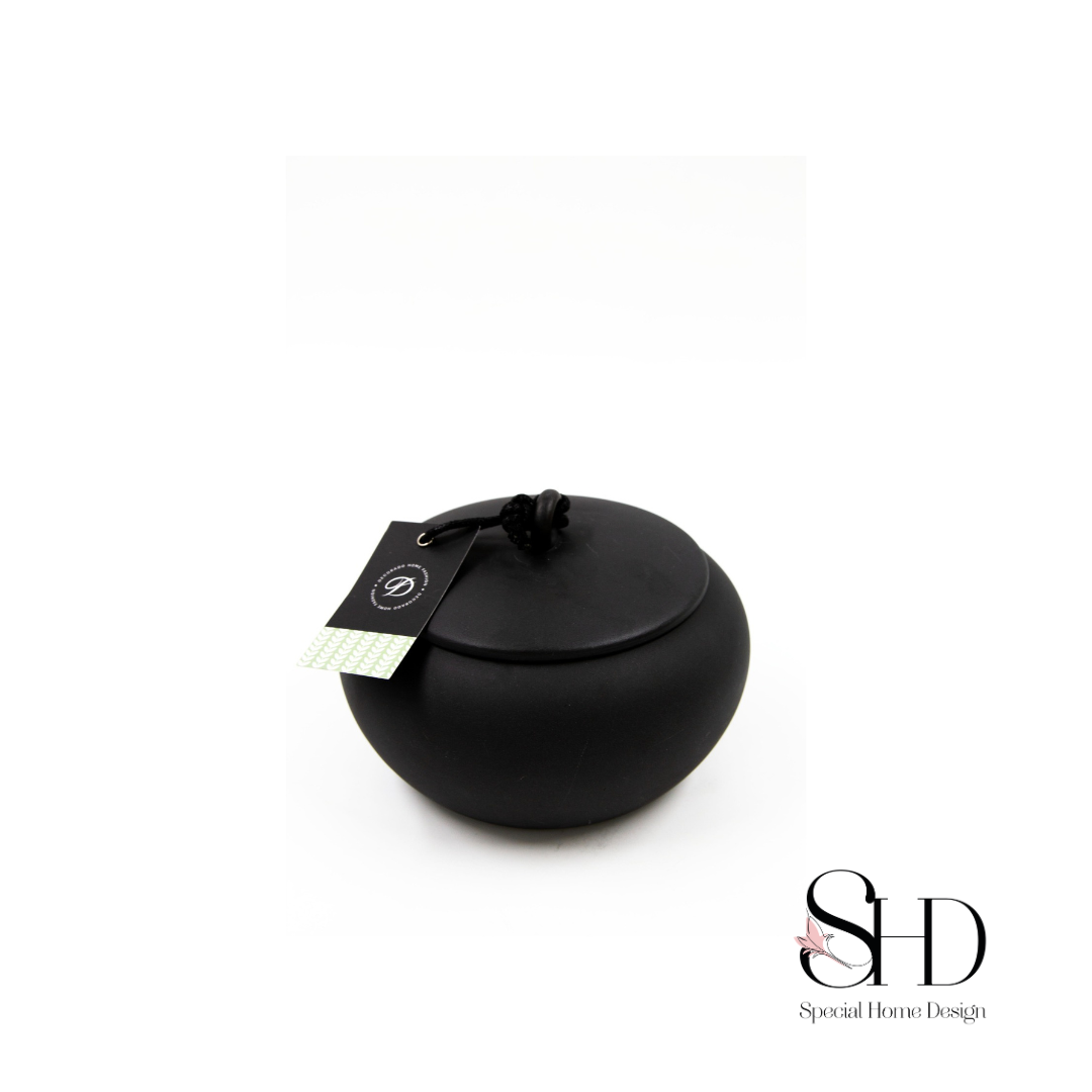 השעווה יצוקה בתוך כלי חרס בעיצוב נורדי עם מכסה לשמירה על השעווה והריח.