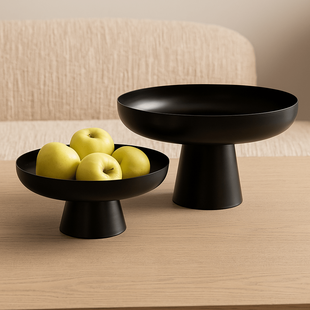 מגש עגול בעיצוב מודרני ואלגנטי עשוי מתכת שחורה איכותית בגימור מאט.