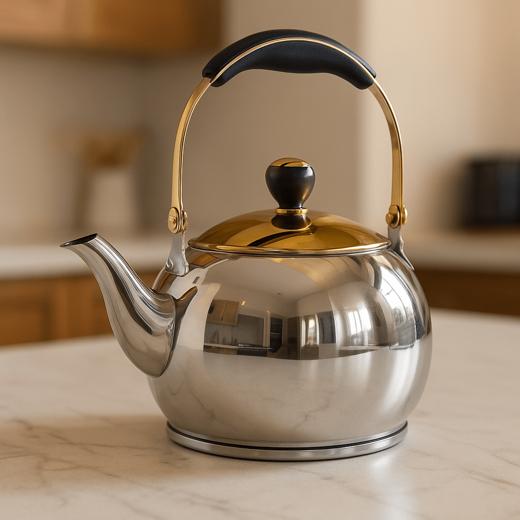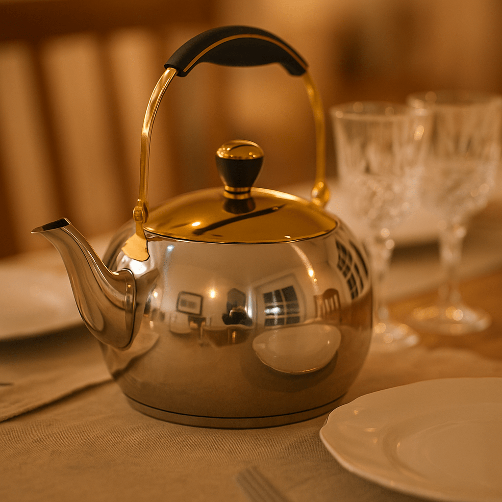 קומקום בעיצוב יוקרתי מסדרת DREAM CHEF עשוי נירוסטה איכותית בשילוב גימור זהב ייחודי.
