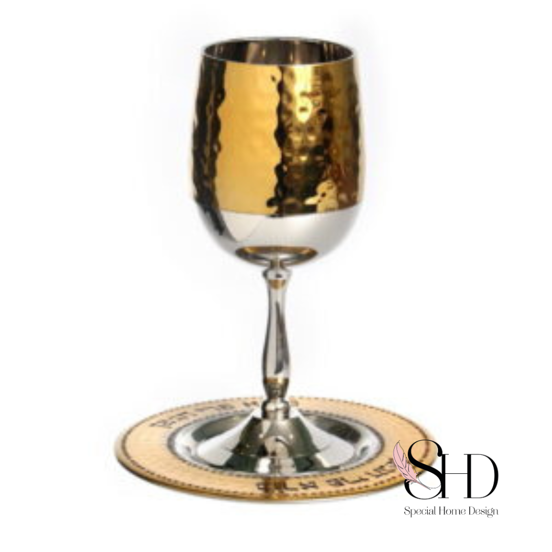 גביע קידוש יוקרתי בעיצוב רקוע בשילוב זהב וכסף המשלב בין מסורת לבין מראה מודרני ונקי.