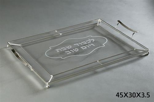 עשוי מאקריליק איכותי בשילוב מסגרת מתכת בגימור כסוף, עם כיתוב : "לכבוד שבת ויום טוב".