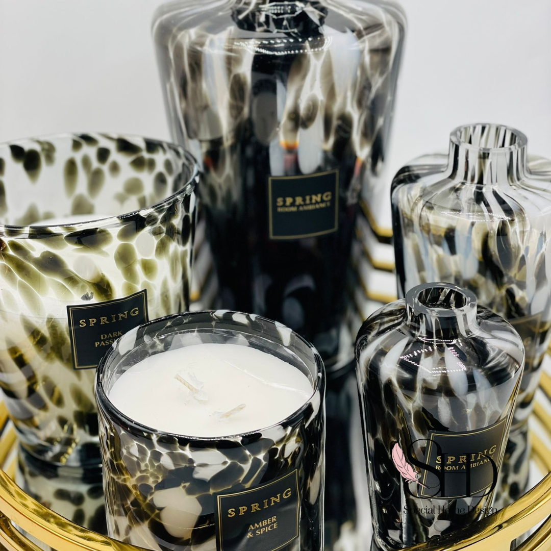 נר בישום שעווה טבעית באגרטל מנומר שחור לבן