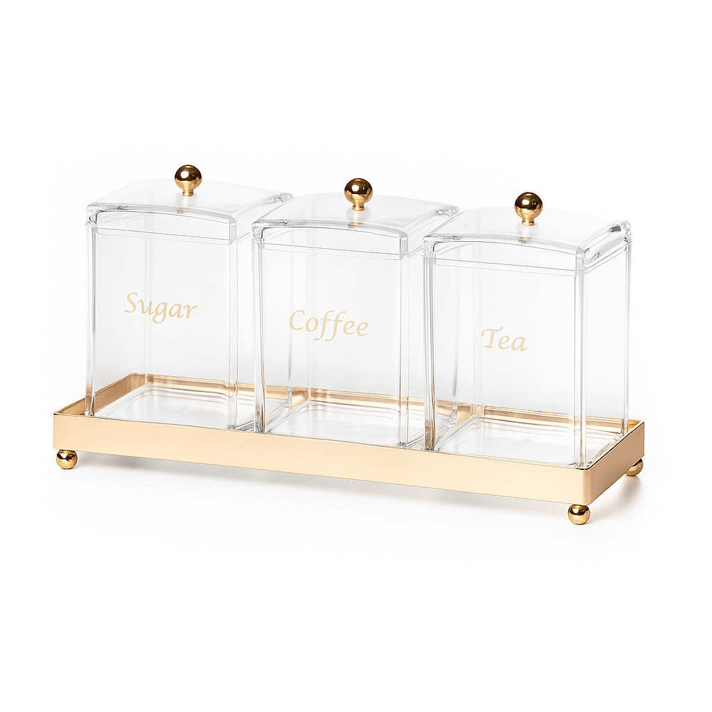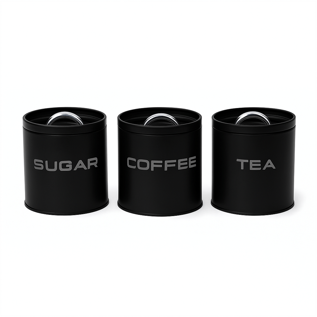 הכניסו חמימות וסטייל למטבח שלכם עם סט אחסון לתה, קפה וסוכר בגוון שחור קלאסי.