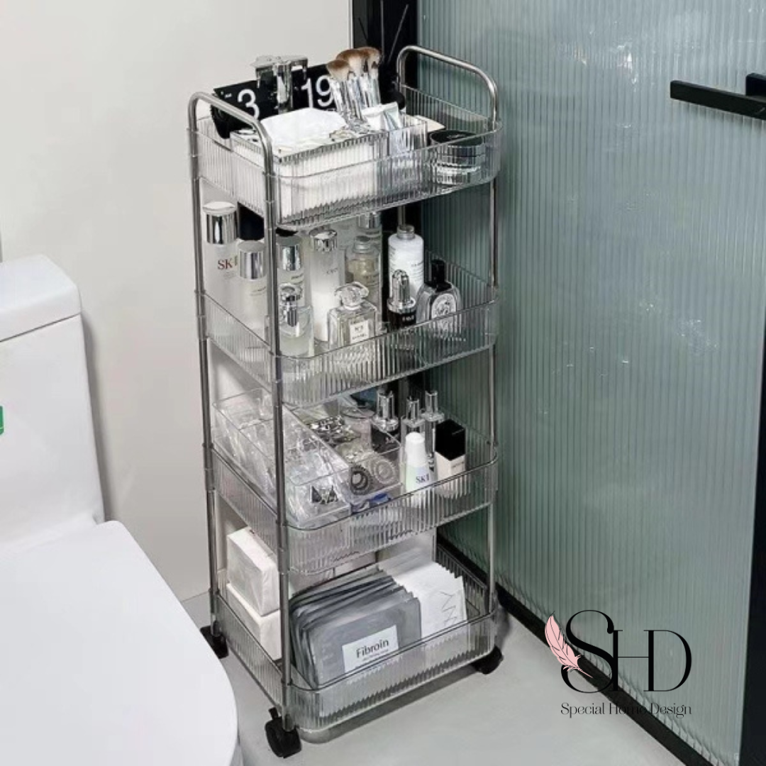 עגלת שירות ניידת בעלת 4 תאי אחסון שקופים
