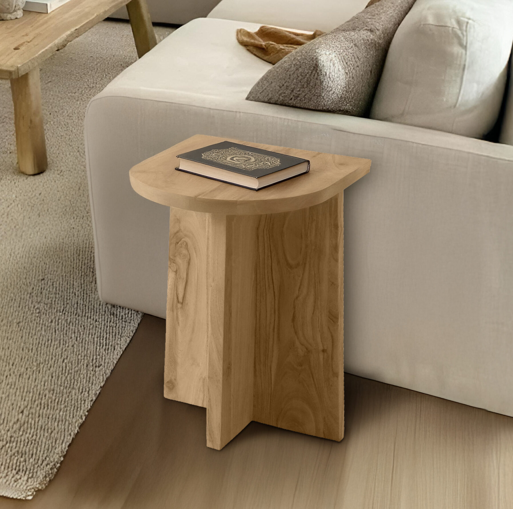 שולחן צד מעץ מלא בגימור טבעי המשלב עיצוב מודרני עם חמימות טבעית של עץ איכותי.