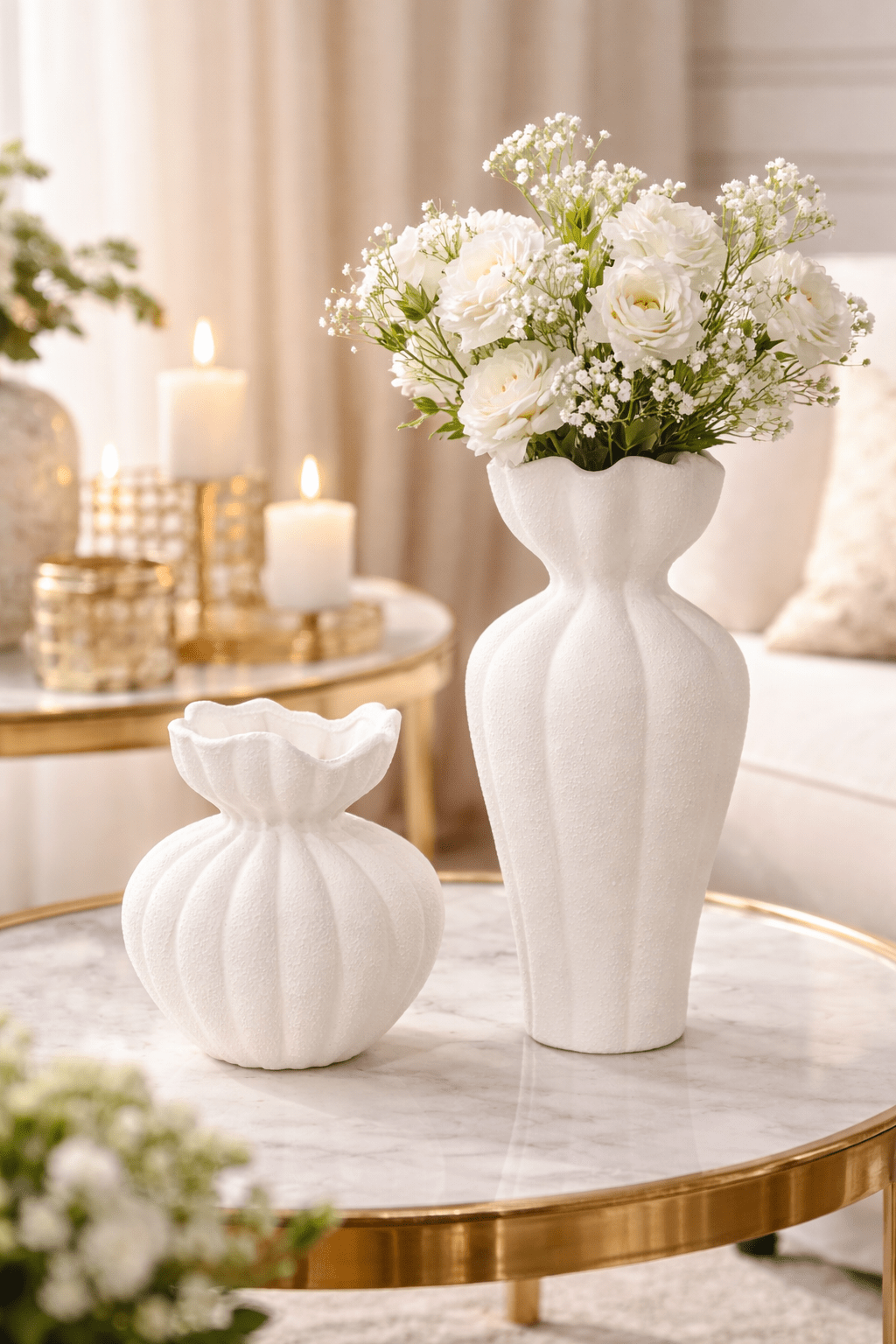 אגרטל ורונה עשוי קרמיקה לבנה בגימור מט עדין