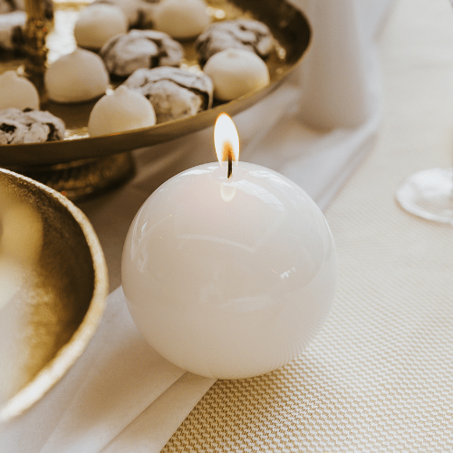 נר בעיצוב עגול ואלגנטי בגוון לבן חלק המוסיף חמימות, רוגע וניקיון לכל חלל.